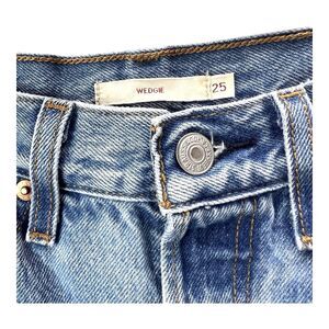 Levi Wedgie Ankle Jeans Straight SZ 25 Premium Denim Light Wash Distressed