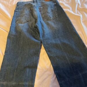 Perfect condition, frayed bottom, size 29, longer length hits lower calf taller ladies, to the ground for petite ladies, zipper