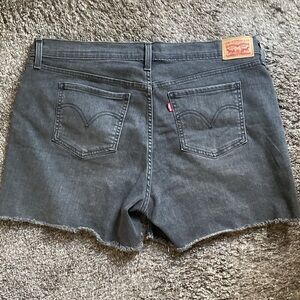 Levi Worn Black Frayed Hem Jean Shorts Lightweight Stretch Denim 34 Waist NWOT