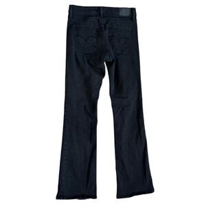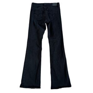Experience the perfect blend of style and comfort with the Levi Strauss & Co Women's Slimming Boot jeans in size 28. These black, cotton jeans offer a slimming boot cut design tailored for women.