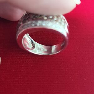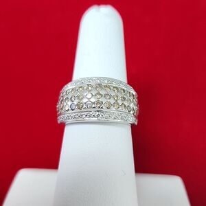 Levian signed 14K White Gold Chocolate Diamond wide cigar Band Ring size 7.75