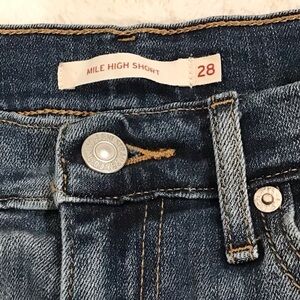 Levi’s Size 28 6/7) Mile High Denim Women’s Jeans Shorts, High Rise, Raw Hems, Stretch. Preowned. Nice condition. No stains or flaws.