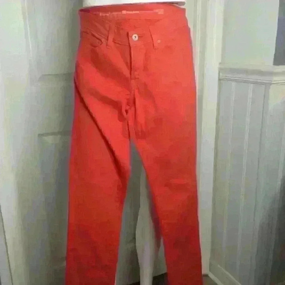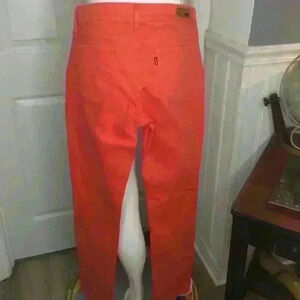 Levi's; 28 Demi Curve Jeans, Orange/Red. Modern Rise/Skinny/Riveted. Leather patch, Brown Tag, Little "e". 14" waist, 32" inseam. Never worn, NO visible signs of any flaws. These are an ORANGE/RED COLOR. Great little pair of jeans!