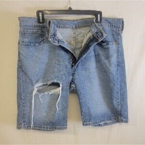 Levis 412 Shorts 38 Mens Blue Denim Casual Jeans Slim Fit Distressed