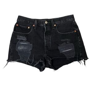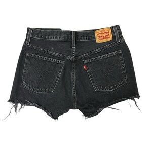 Levi's 501 30 Black Button Fly Raw Hem Distressed Cutoff Denim Jean Shorts