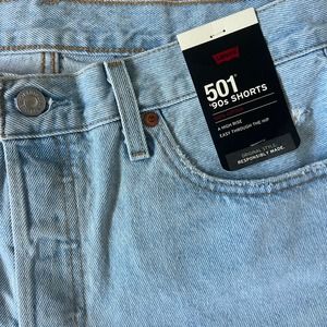 Levi's 501 90s High Rise Easy Through The Hip Distressed Shorts Blue Size 28 NWT