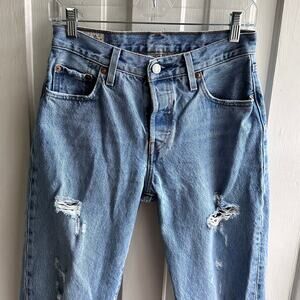 Levi's 501 90s Straight Leg Distressed Jeans Medium Wash