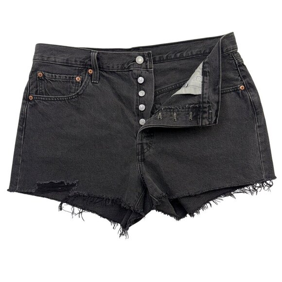 Description: Levis 501 Black Cut Off Button Fly Jean Shorts High Rise Western Womens W32