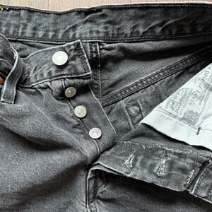 Levi’s 501 Black Cutoff Denim Shorts – Distressed Frayed Hem (Waist 29)