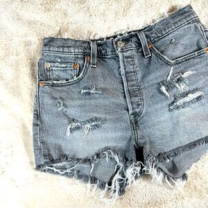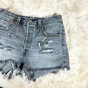 Levi’s 501 Black Gray Wash Medium to Heavy Distressed Cut Off Shorts
