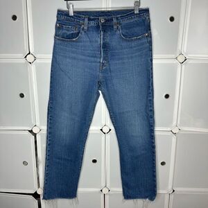 Levi's Women's 501 Blue Straight Leg Stretch High Rise Button Fly Jeans Size 31. Some stretch in denim