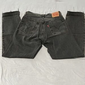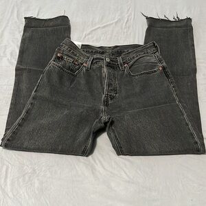 Levi’s 501 Button Fly Black Faded Wash Raw Hem Jeans
