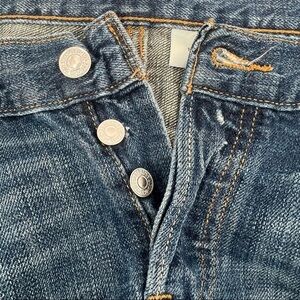 Levi's 501 Button Fly Cut Off Distressed Denim Jean Mini Skirt Size 28 Women's
