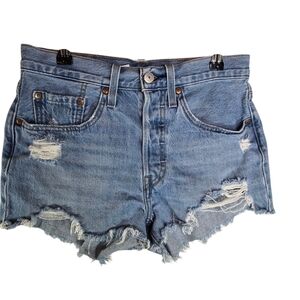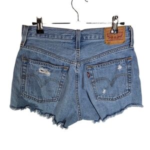 Levis 501 Button Fly Cut Off Distressed Denim Jean Shorts