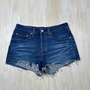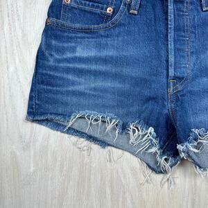Levi's 501 Button Fly Cut Off Fray Hem High Rise Denim Jean Shorts Women's 26