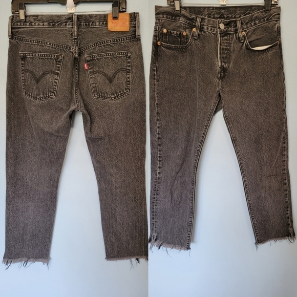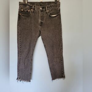 Levi's 501 Button Fly Frayed Hem Jeans in Black Size 28