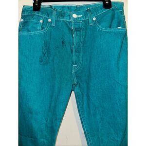 Levis 501 Button Fly Jeans Men's 34 x 26.5 Turquoise Teal Straight red tab