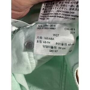Levi’s 501 Button Fly Jeans Straight Leg Teal Aqua Size 27 Raw Hem Y2K C25