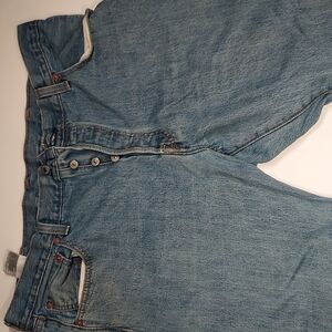Vintage Levi's 501 Jeans in great shape. Slight color discoloration on the top right by pocket. This is considered to be Character and doesn't affect the feel or use of these great pair of jeans. See photos for measurements.