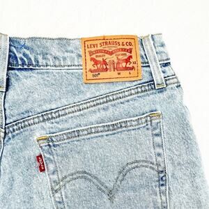 Levi's 501 Button Fly Shorts Light Wash Denim Jeans Ripped Leg Cutoff Size 28