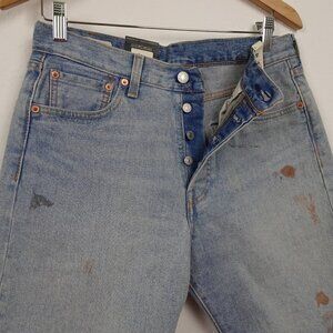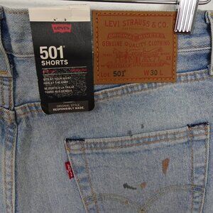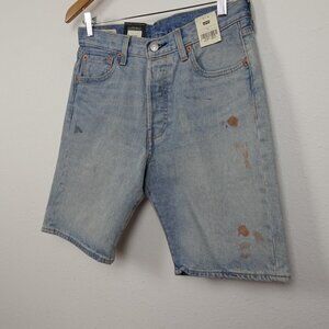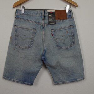 Levi's 501 Button Fly Shorts Men's Size 30 Blue Denim Stretch Paint Splatter