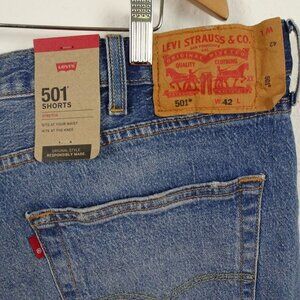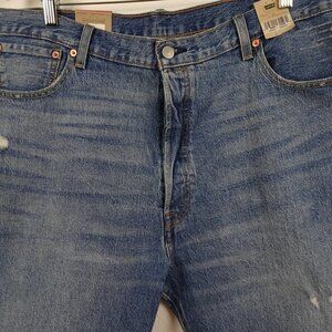 Levi's 501 Button Fly Shorts Men's Size 42 Blue Denim Stretch Distressed