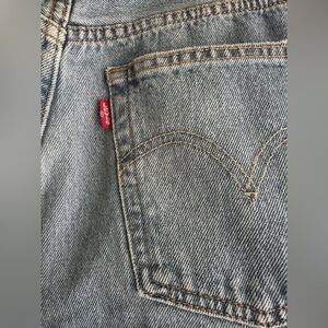 levis 501 jeans button fly vintage style distressed denim straight leg medium wash classic fit women’s size 27 x 30 retro comfy closet staple