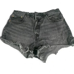 Levi's 501 Button-Fly Trashed Black Denim Distressed Cut-Off Shorts Size 31