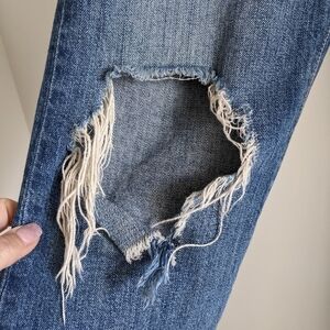Distressed knee on one leg