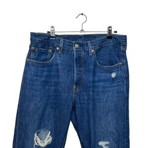Style Tags: 501 crop jeans, straight leg denim, distressed Levi’s, button fly classic, 100% cotton fit