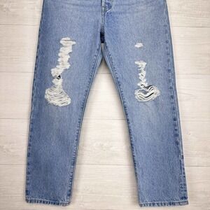 Levi's 501 Cropped Light Wash Jeans Womens 27 Straight Leg Distressed High Rise