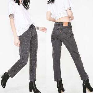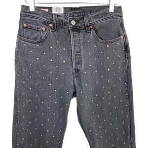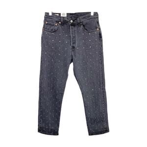 Levi's 501 Crystal Crop Jeans 28 Black Embellished High Rise Mom Jeans New NWT