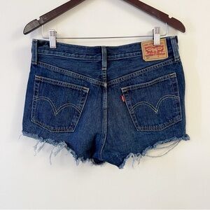 Levi’s 501 Cut Off Jean Shorts High Rise Raw Hem Size 28 Dark Blue Wash