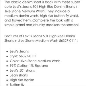 Levi’s 501 Cut off Shorts in wash Jive Stonewash Size 24
