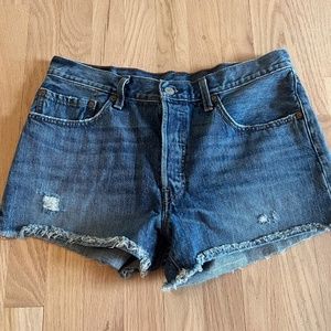 Levi's 501 button fly cut-off faded women's jean short size 30. These jeans are faded to a terrific vintage feel. Worn minimally and in great shape!