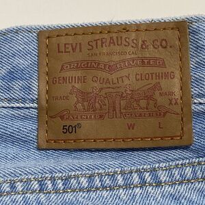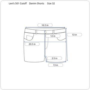 This is a pre-owned pair of Women's Levi's Premium "Big E" 501 Distressed Cutoff Button-Fly Light Wash Denim Shorts in a Size 32 (Actual 33x2.5). These shorts are in good condition with light wash wear, no stains, and no unintentional damage. The shorts have raw, frayed hems, intentional distressing on the thighs (front), and light distressing on the pocket edges. The cotton denim is midweight and not stretchy. I encourage you to enlarge the photos to view small details and to review the measurements on photo #12 to determine fit. If you have any questions about this item, please ask!