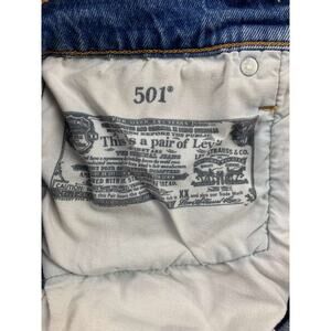 Levis Denim Cutoff Shorts In Blue Women W27. 501 model with a frayed raw hem and classic 5 pocket design. Easy to style for casual days and summer wear.