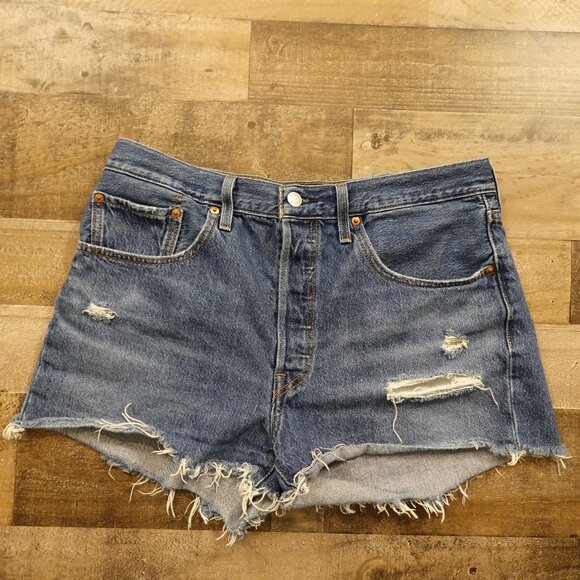 Levi’s 501 Cutoff Denim Shorts Women’s W31 Medium Wash Distressed Raw Hem