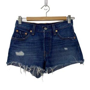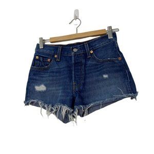 Levi's 501 Denim Shorts High Rise Raw Hem Button Fly