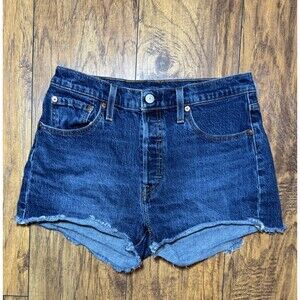 * Vintage Levis 501 Shorts Womens Size 29 Denim Shorts Distressed Shorts Levis Denim Mid-Dark Wash Shorts Button Fly Shorts Festival Shorts Americana Shorts Vintage Denim Clothing Retro Levis Shorts Sustainable Fashion Festival Fashion Fan Americana Lover Denim Collector Retro Streetwear Vintage Wardrobe Essential Levis 501 Denim
