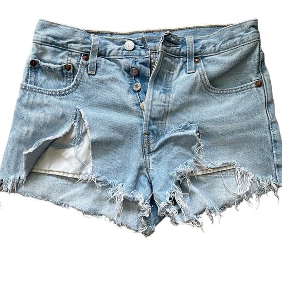 Levi’s 501 Destroyed High-Rise Cutoff Button Fly Premium Jeans Shorts Size 25