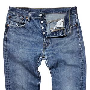 Levi’s 501 Distressed Blue Jeans Button Fly Denim Straight 32x32