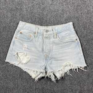 Levis 501 Distressed Cut Off Denim Shorts Womens Size 24 Light Wash Blue 0674