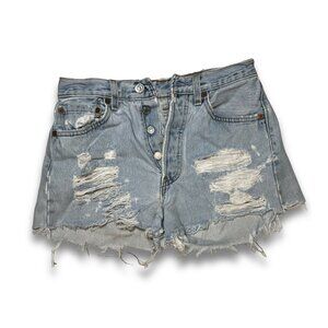Levis 501 Distressed Denim Shorts W27 Button Fly Vintage Made In USA Raw Hem