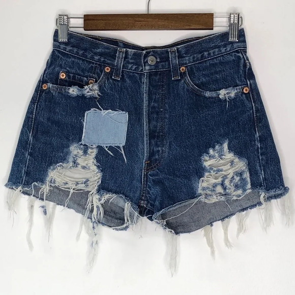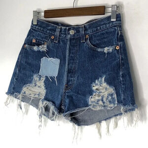 Levi's 501 Distressed Frayed Hem Patchwork High Waist Denim Shorts Size XS