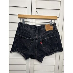 Levi's 501 High Rise Button Fly Distressed Hem Shorts Size 26 Stowaway Black