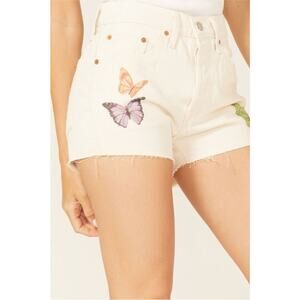 Levis 501 High Rise Cut Off Jean Shorts Give Me Butterflies Cream Butterfly 32