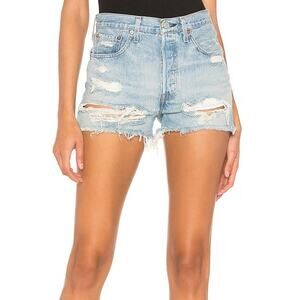 Levis 501 High Rise Light Wash Denim Distressed Cut Off Button Fly Jean Shorts