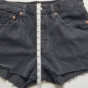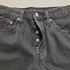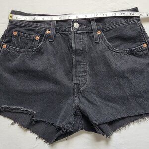Levis 501 High Rise Womens Black Cutoff Raw Hem Jean Shorts Button Fly Size 28