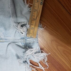 Chic Levi's shorts in light blue denim. Features a stylish frayed hem. Ideal for casual wear.